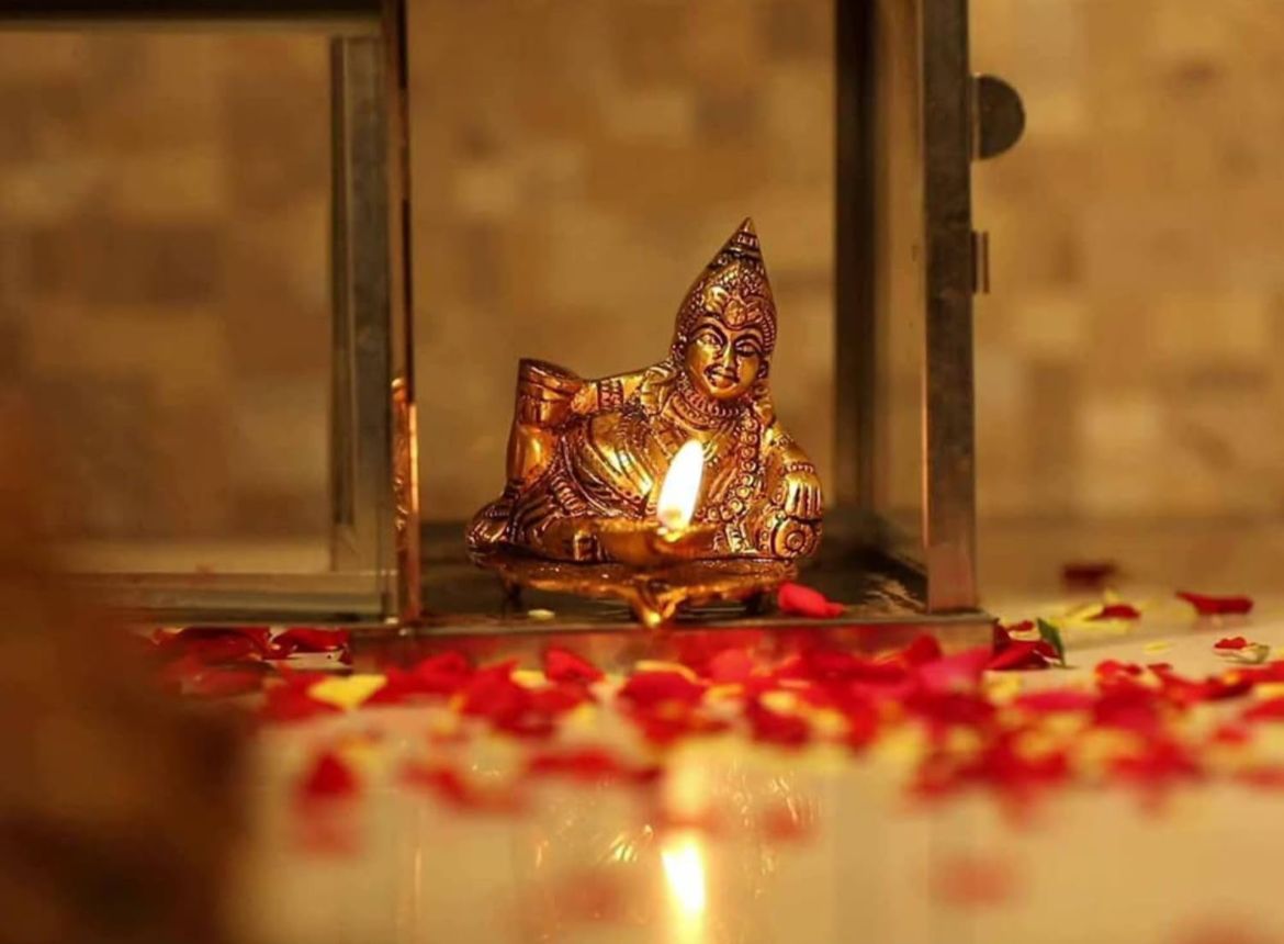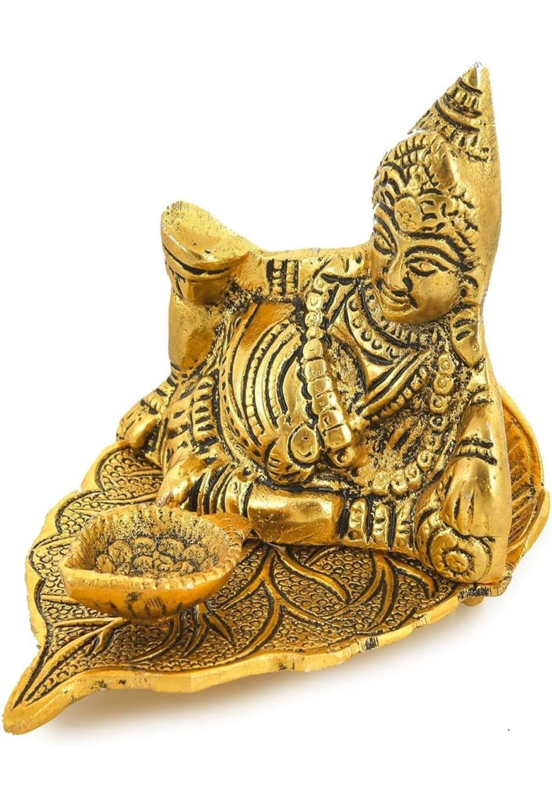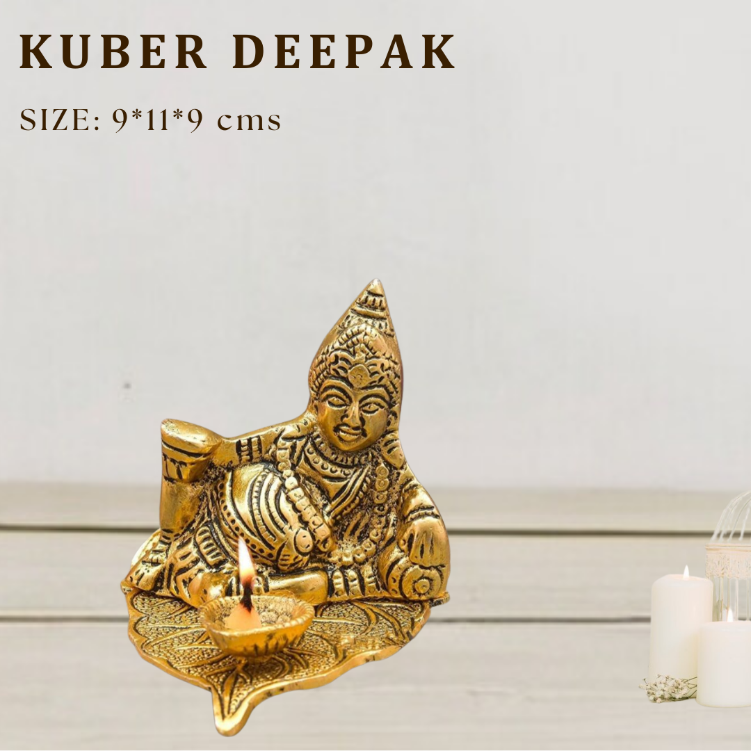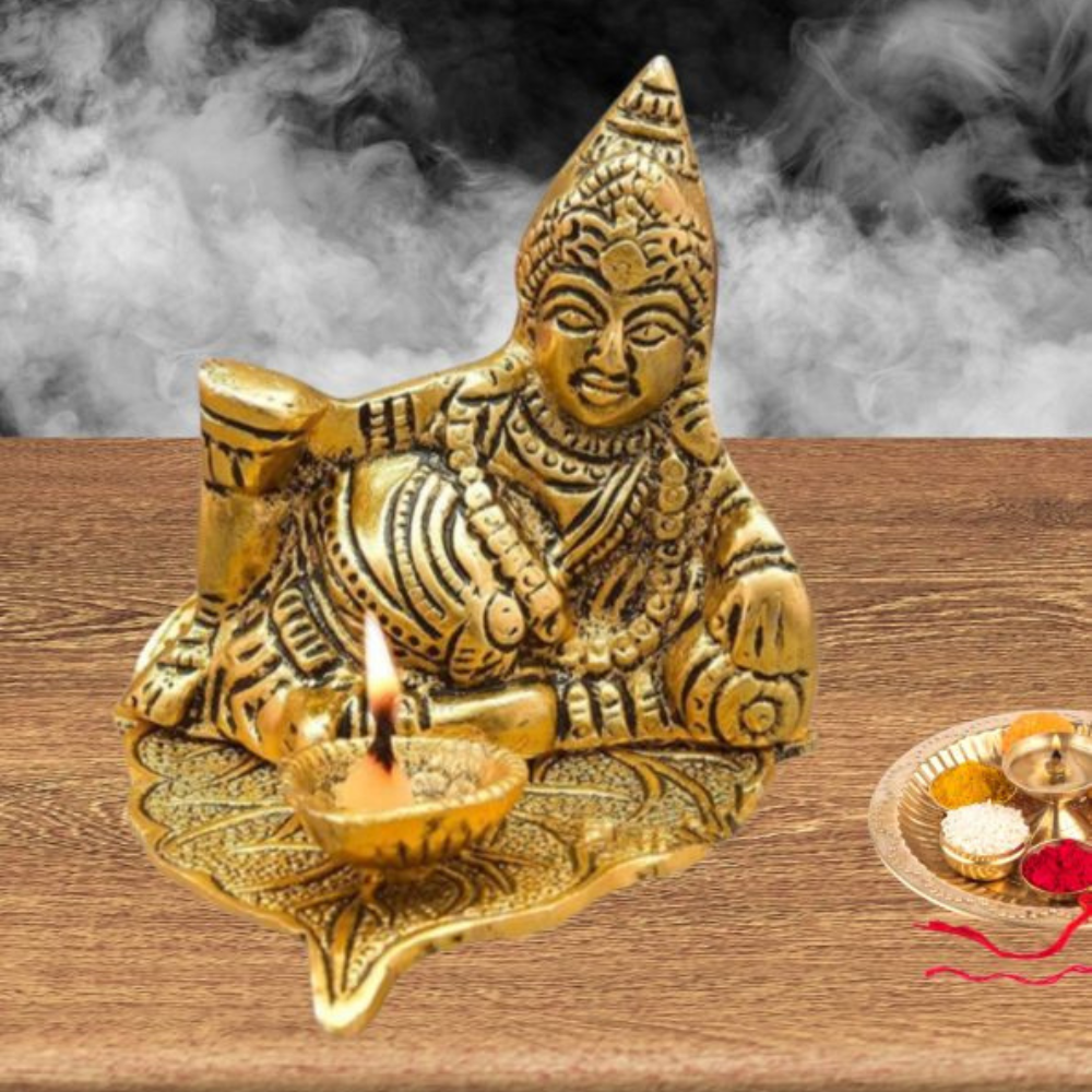 Handcrafted Lord Kuber Sitting on Leaf with Diya