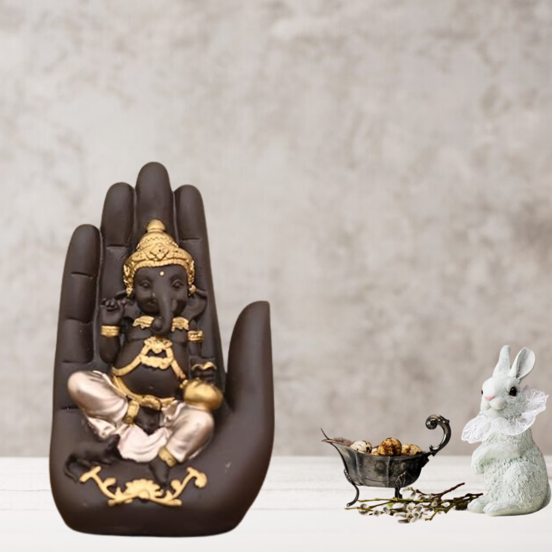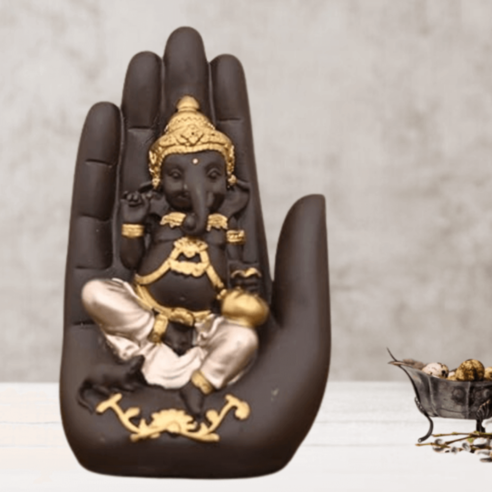 Golden Handcrafted Palm Ganesha Polyresin Showpiece