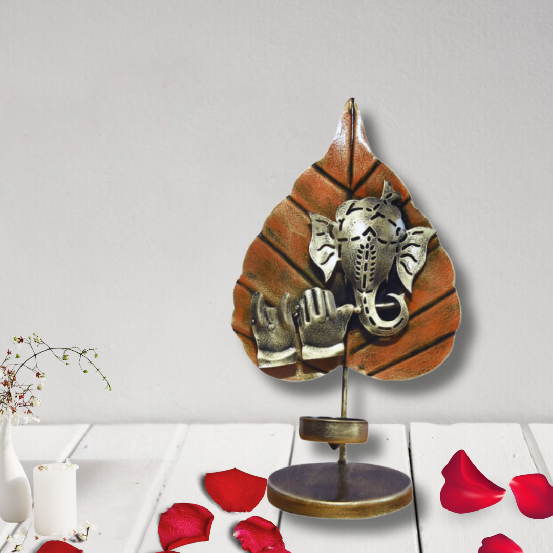 Elevate your home decor with the divine presence of Lord Ganesha through our Iron Metal Brown Lord Ganesha Candle Holder. This exquisitely designed piece combines artistic craftsmanship with spiritual symbolism, making it a captivating addition to any space. Crafted from durable iron, this candle holder features a detailed depiction of Lord Ganesha, the remover of obstacles and the embodiment of wisdom and prosperity. The rich brown color adds a touch of warmth and earthiness to the design, enhancing its aesthetic appeal. This showpiece figurine is made using various inherited methods by the artisans at Atithi Art.